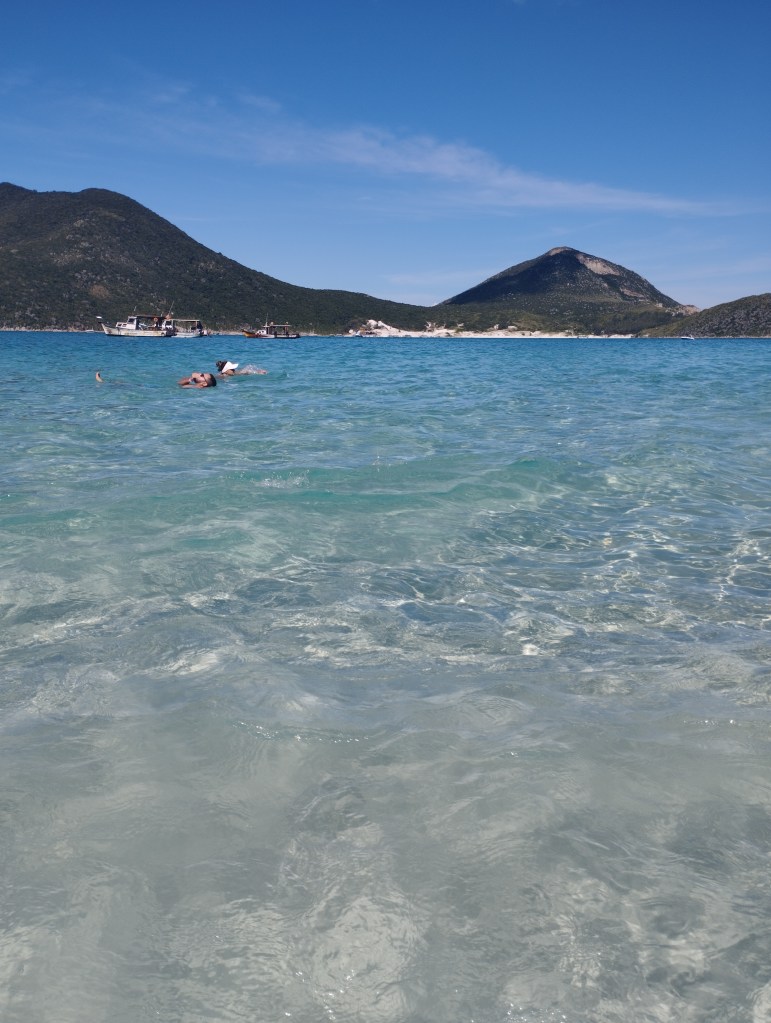 As praias próximas ao centro são pequenas mas lotadas. Bem intimistas, o mar super calmo, parecem piscininhas. A faixa de areia é escassa, mas sempre tem um banquinho para deixar suas tralhas e dar um mergulho. E sim, a água não é quente que nem a do Nordeste, mas nada absurdo de frio.